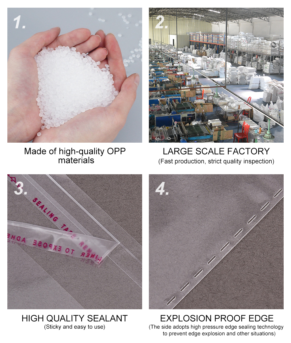 Premium Quality: Our self-adhesive bags are crafted from high-grade Oriented Polypropylene (OPP) material, known for its excellent clarity and strength. This ensures that your products are not only well-protected but also beautifully displayed.